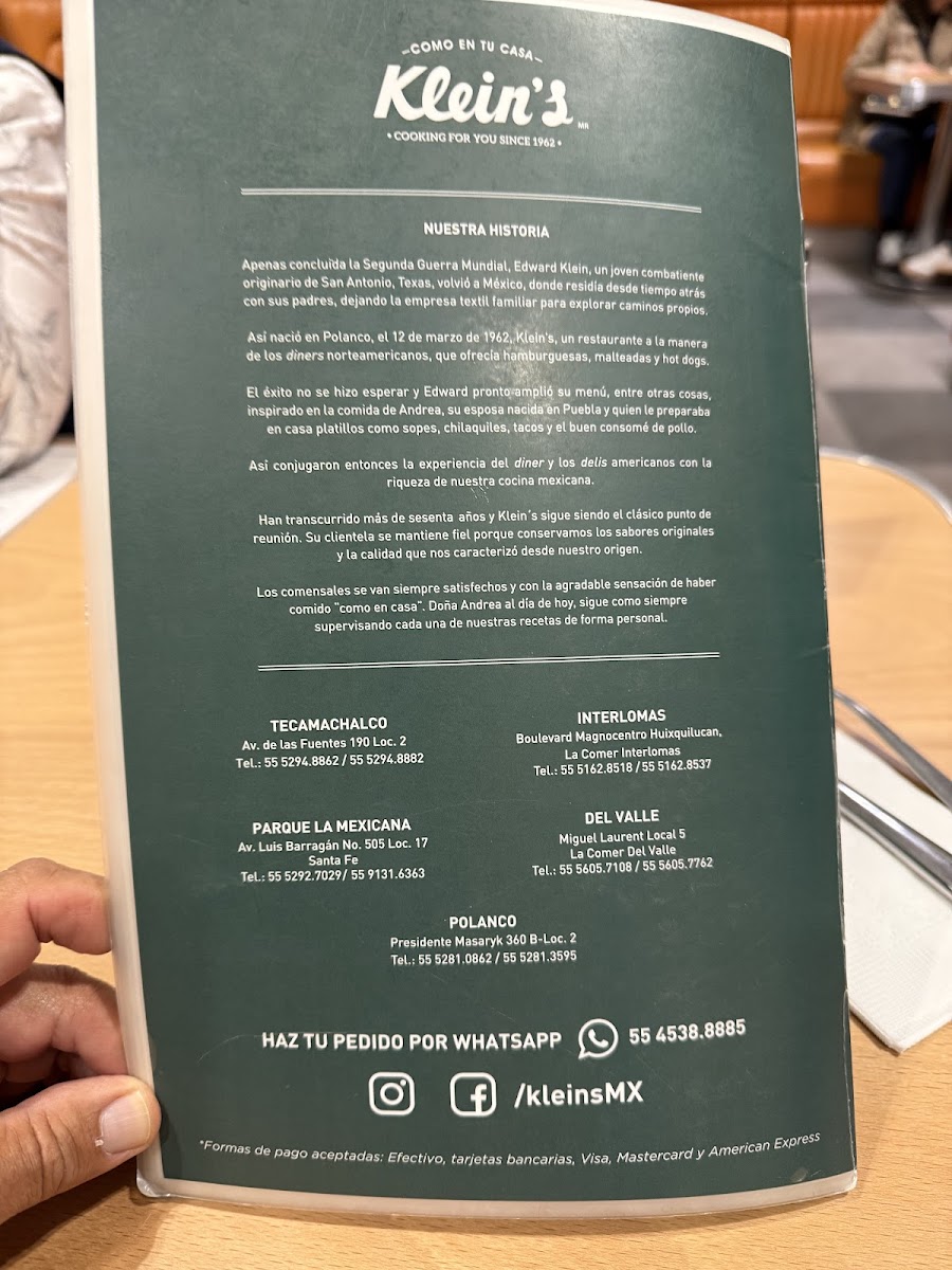 But Klein's doesn't stop at mains; their dessert selection is equally enticing. Satisfy your sweet tooth with the legendary Pastel De Tres Leches or indulge in a warm Pay De Manzana A La Mode, topped with vanilla ice cream. The extensive drink offerings, including fresh juices, elevate the dining experience further.
